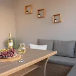 Dieses am Strand Apartment bietet einen Patio, einen Balkon und eine Sitzecke mit einer Klimaanlage für höchsten Komfort. Für zusätzlichen Komfort im Diogenis Deluxe Apartment sorgen eine begehbare Dusche und eine getrennte Toilette. Das Badezimmer ist mit einem Haartrockner, Badelaken und Hausschuhen ausgestattet.