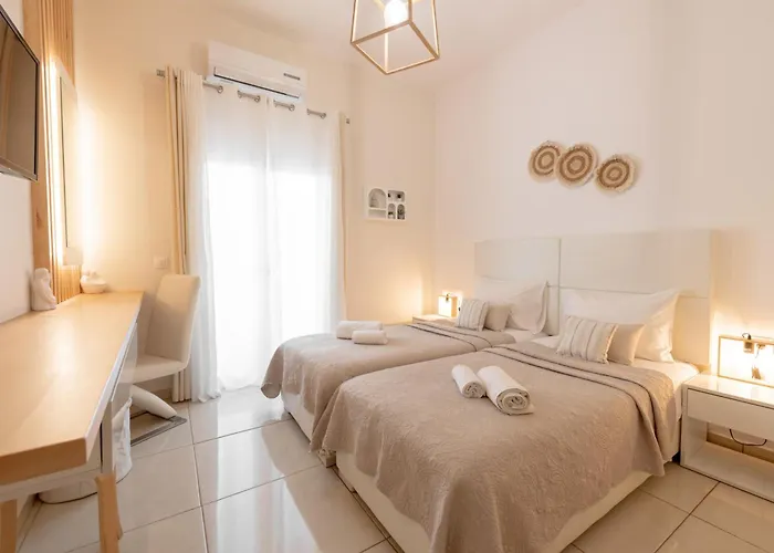 Set merely 0.6 km from Town Beach, the 65 m^2 Diogenis Deluxe Apartment comprises an adjoining terrace and a balcony overlooking the city. Featuring a golf course and a satellite flat-screen, this 1-bedroom apartment is situated only a short distance from Pervolia beach.